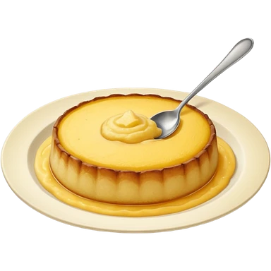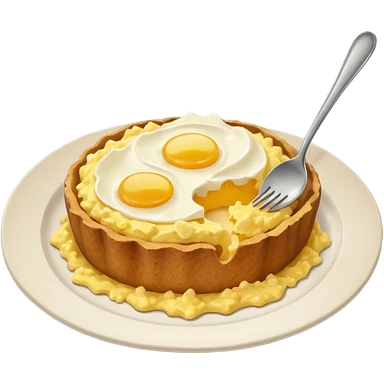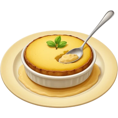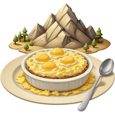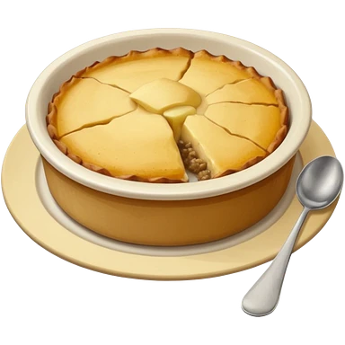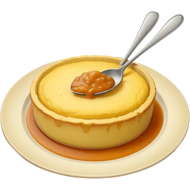 a deep dish plate with a yellowish food in it, in a bit of small small lumps and very dry, small mountain. with a bit of applesauce on top on the side and a spoon sticking out emoji | AI Emoji Generator