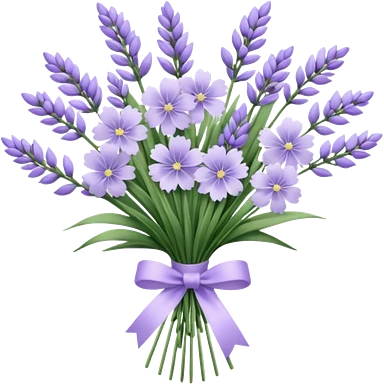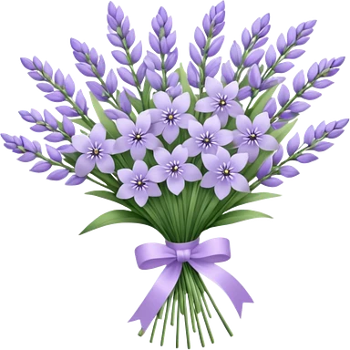 A delicate hand-tied lavender bouquet, featuring wisps of pale lila emoji | AI Emoji Generator