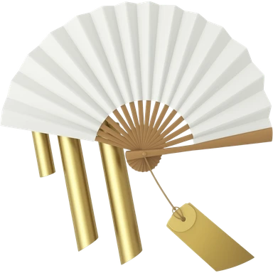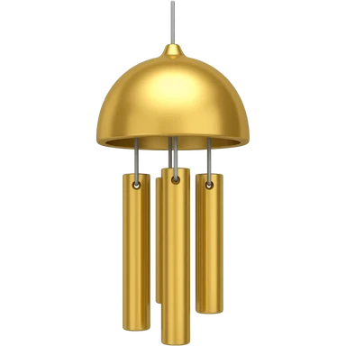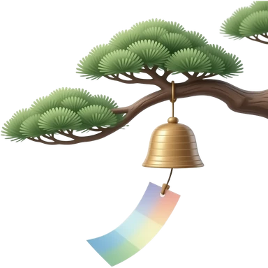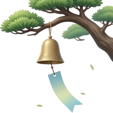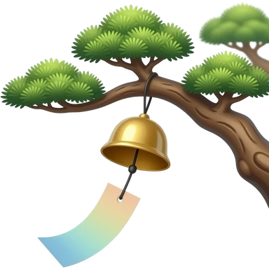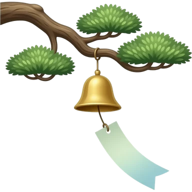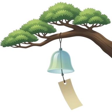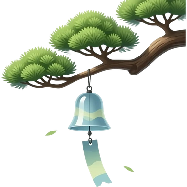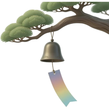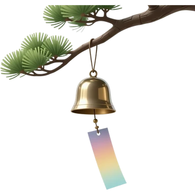 A delicate Japanese furin wind chime hangs gently in the air, suspended by a thin string. It features a single piece of paper attached below, swaying softly with every breeze. The subtle movement creates a sense of calm and quiet elegance, capturing the essence of minimalism and serenity. emoji | AI Emoji Generator
