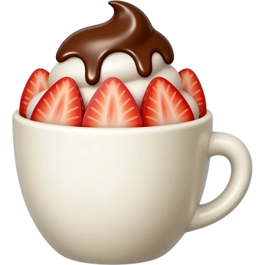cream with strawberry in a cup with chocolate syrup topping emoji