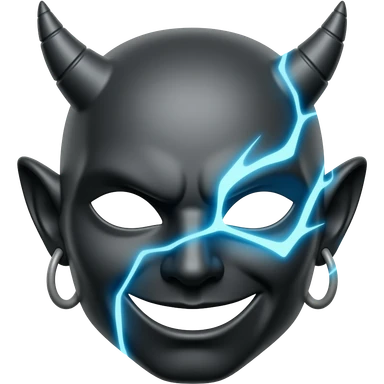 a Mask where its left eye hole is closed and there is blue line of energy corsing through the mask and its in black color like a demon emoji