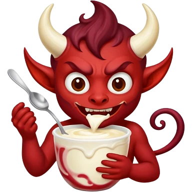 a demon eating a cup of vanilla yogurt emoji | AI Emoji Generator