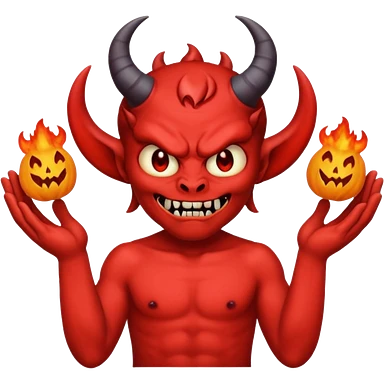 A demon with 2 hands 1 is holding 9 and the other 1 is holding 11 emoji