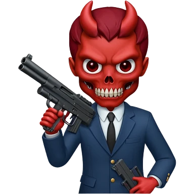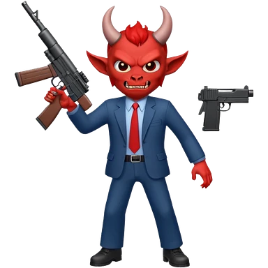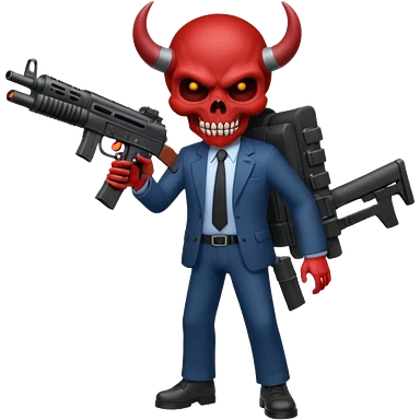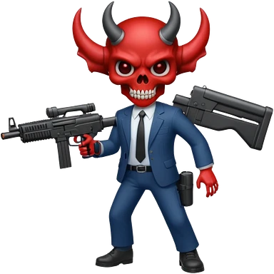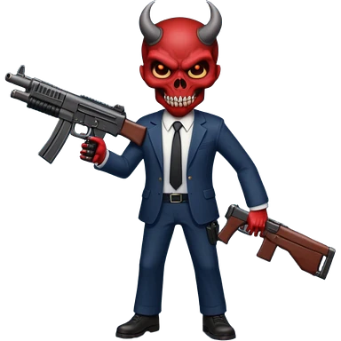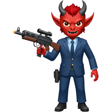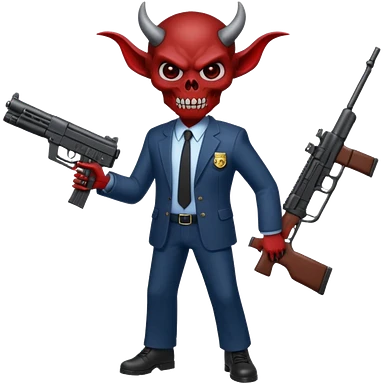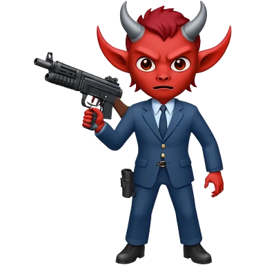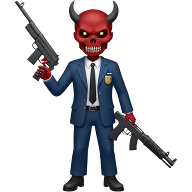A Demon from hell that is dressed like a fbi agent with a machine gun, full body pointing the machine fun to the left. In the style of your be emoji