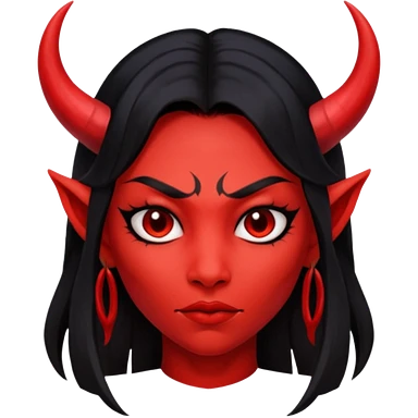 A red-skinned demon with crimson hair, purple eyes and four black horns, emoji