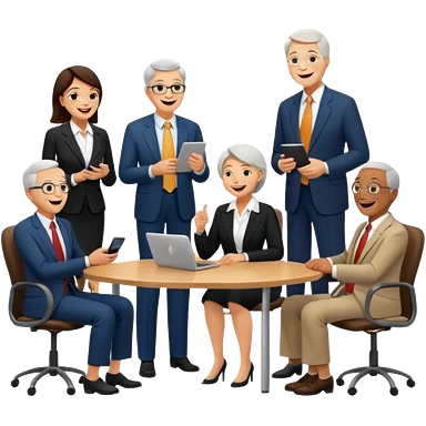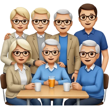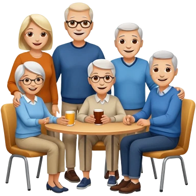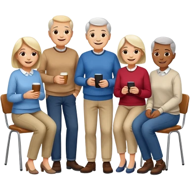 A large crowd of adults and seniors in casual clothing at an afterwork meeting emoji