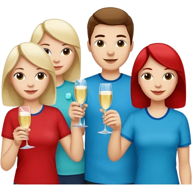 A large crowd of adults in casual clothing with red, aqua and blue shirts with drinks chatting at an afterwork meeting emoji