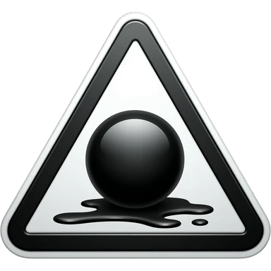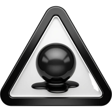 The highly glossy black liquid pools and drips within the sign's inner area, isolated against a dark background. emoji | AI Emoji Generator
