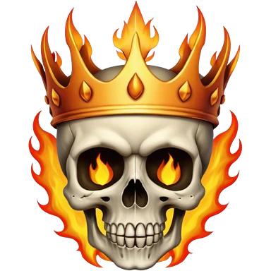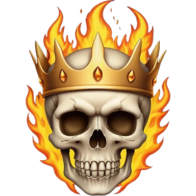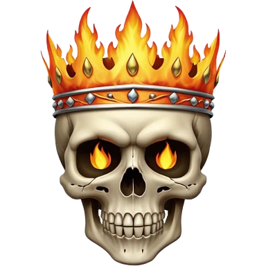A detailed skull crowned by realistic flames, gothic metal aesthetic, high contrast, soft neutral background, subtle shadow, emoji-style icon, clean edges, digital illustration. emoji | AI Emoji Generator