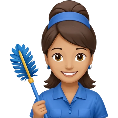 a Detective man with beige hat, a beige coat is interviewing the cleaning Lady with Brown hair, high ponytail and yellow cleaning gloves emoji | AI Emoji Generator