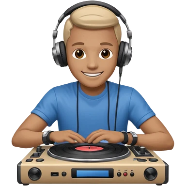 A DJ With dark blond Hair a Blue t Shirt and a turntable emoji