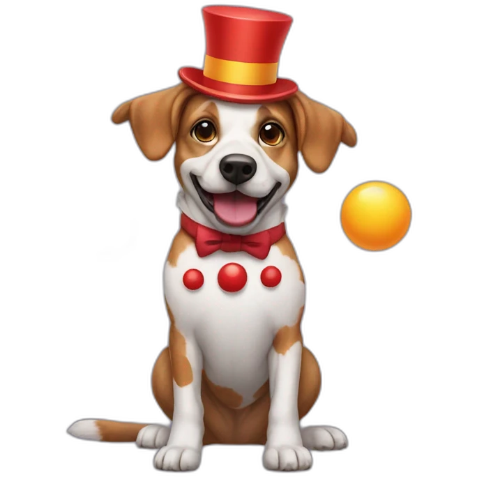 A dog dressed as a clown juggling emoji | AI Emoji Generator
