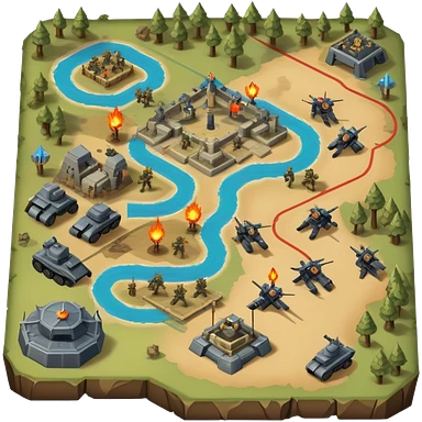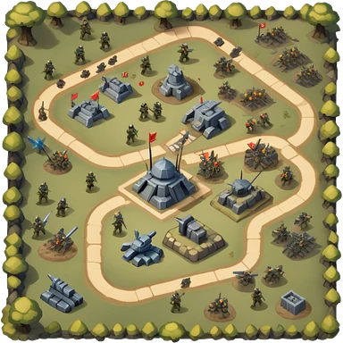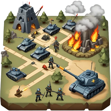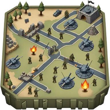An icon showing a strategic battle scene with a top-down view of an army, inspired by classic strategy games. The interface displays unit icons, a minimap, and resource counters. Soldiers and siege weapons engage in combat on detailed terrain. Transparent background. emoji