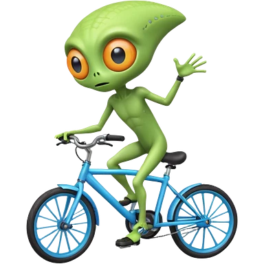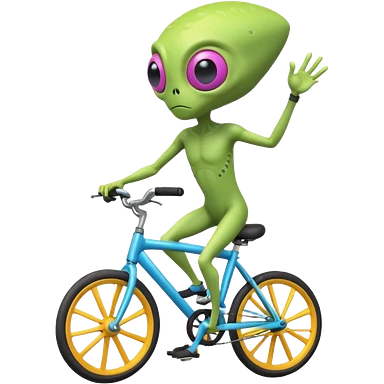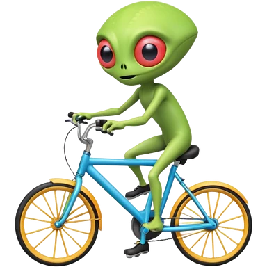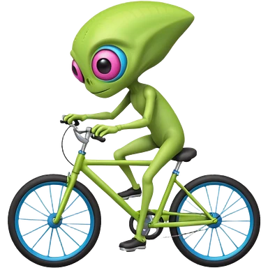 one-eyed alien riding a bicycle, large single eye, colorful skin, funny balance pose, cute sci-fi style, 3D cartoon, mobile game icon style, clean background, no text, no watermark emoji
