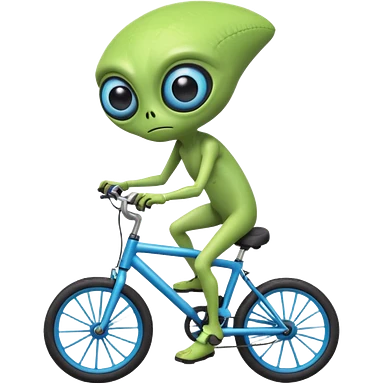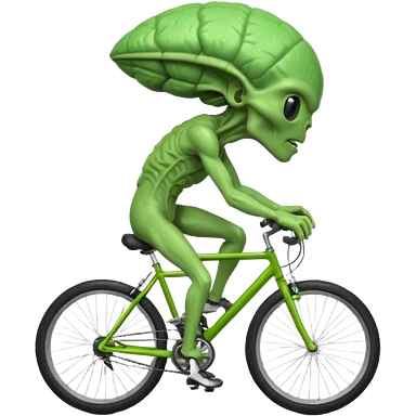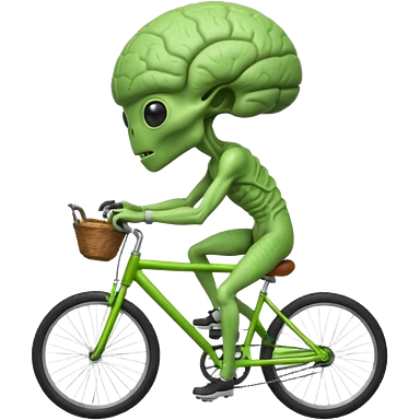 big-brain alien riding a bicycle, oversized head, visible brain texture, intelligent but clumsy cycling pose, sci-fi cartoon vibe, 3D cartoon, mobile game icon style, clean background, no text, no watermark emoji
