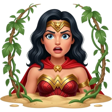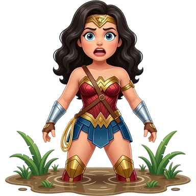 a shocked wonder woman in jungle quicksand emoji