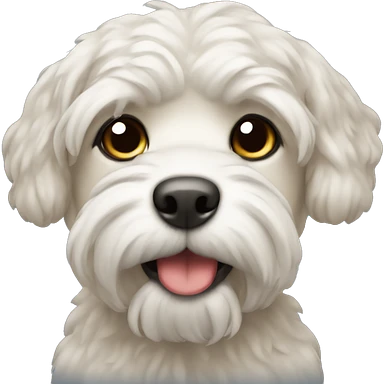 The image shows a cute illustration of a small fluffy dog . Maltipu . sitting on her paws emoji