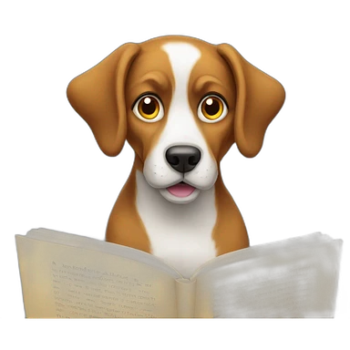 beige dog reading a book the color of the sky with a big white heart on its back emoji