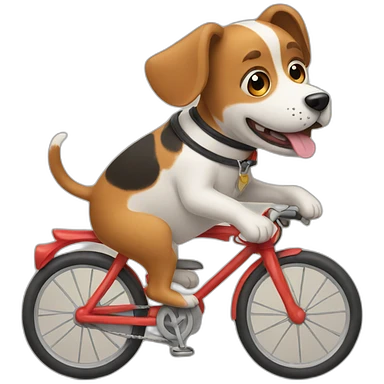 a dog riding a bike with a helmet on with a chocolate bar in his mouth with Slippers on emoji