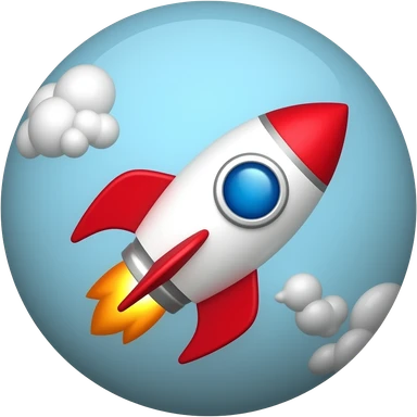 A colorful cartoon space rocket with flames shooting out, ready for liftoff emoji