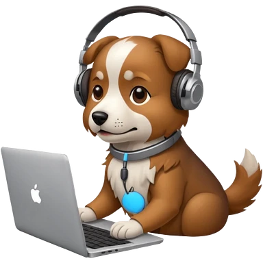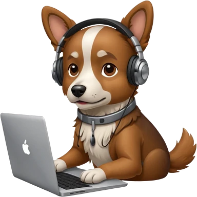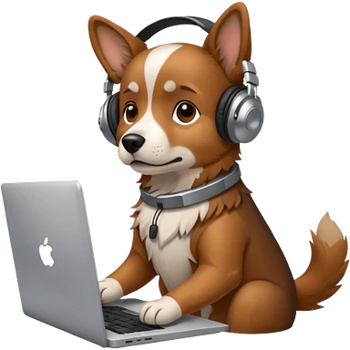 A dog with headphones on a laptop emoji | AI Emoji Generator