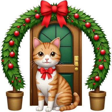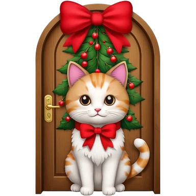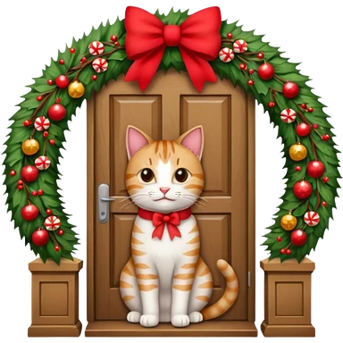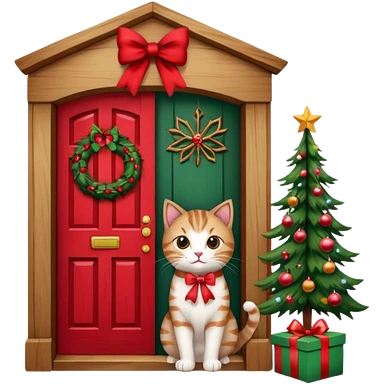 A door with a cat in front of it with h christmas elements emoji | AI Emoji Generator