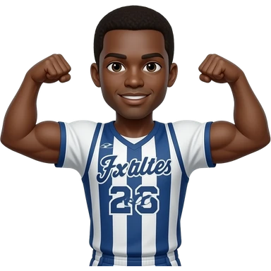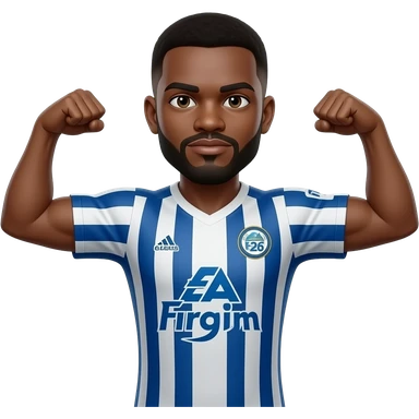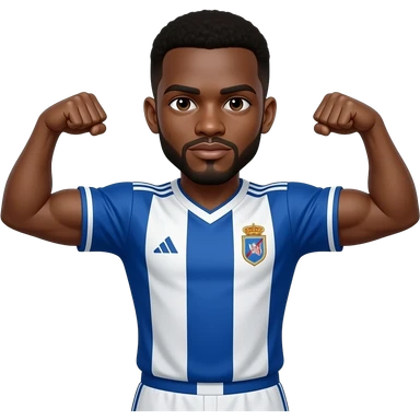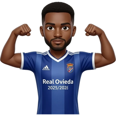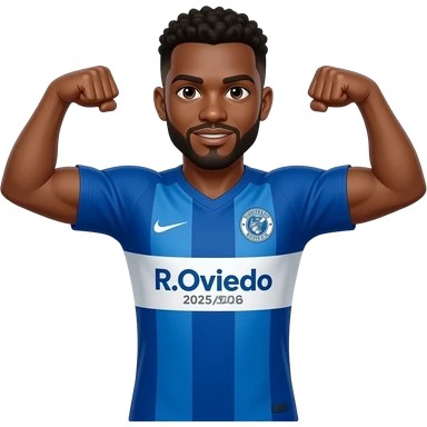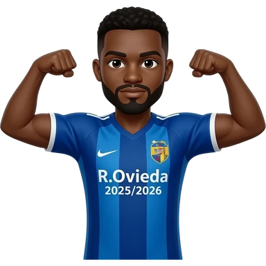 Black man with goatee double arm flex wearing a blue R.Oviedo 2025/2026 home kit emoji