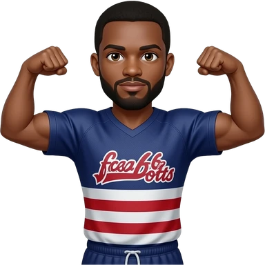 Black man with goatee double arm flex wearing fc26 tots jersey emoji