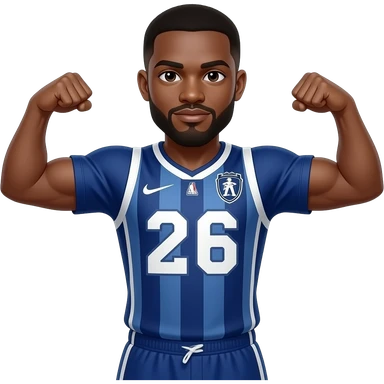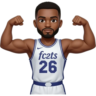 Black man with goatee double arm flex wearing fc26 team of the season jersey emoji