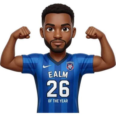 Black man with goatee double arm flex wearing EA fc26 team of the year jersey emoji