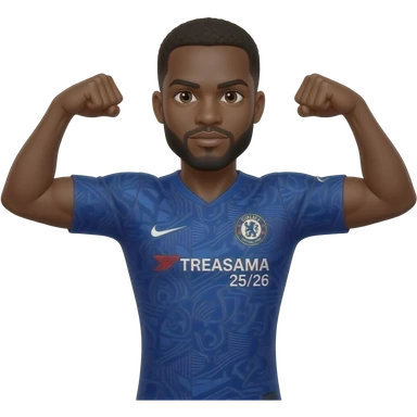 Black man with goatee double arm flex wearing Chelsea 25/26 third jersey emoji