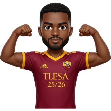 Black man with goatee double arm flex wearing Adidas As Roma 25/26 away jersey emoji