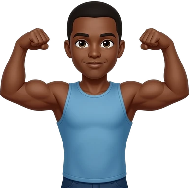 Black man double arm flex wearing Chelsea FC away kit emoji