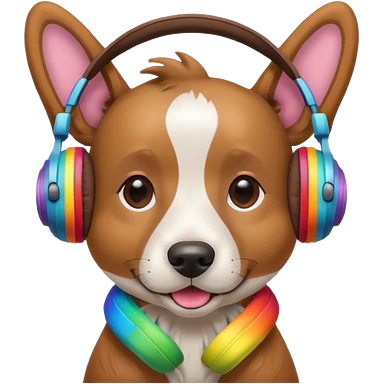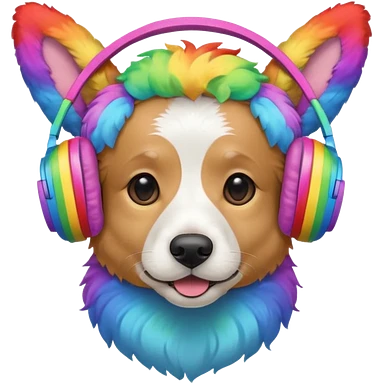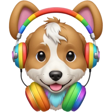 A dog with rainbow head phones emoji