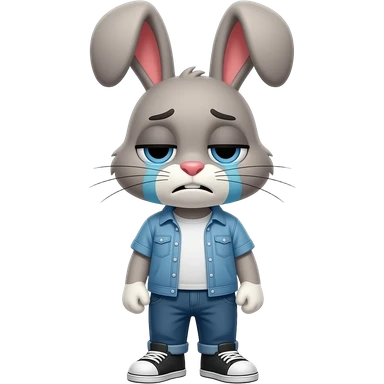 A bunny wearing casual clothes looking tired as if needs some immediate relaxation , add some drained burnout in the facial expressions emoji