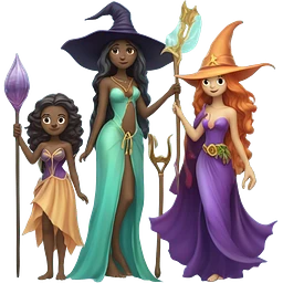 A dungeons and dragons team consisting of a human rogue,a blue Druid firbolg, a lion paladin and a female elf wizard emoji | AI Emoji Generator