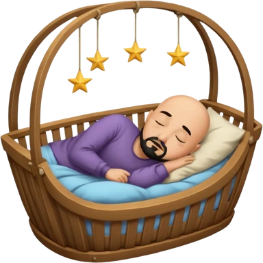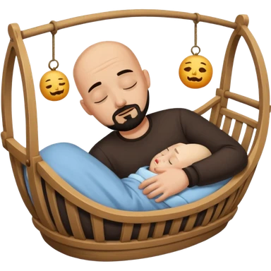 a bald, tan who has a black goatee sleeping in a cradle emoji