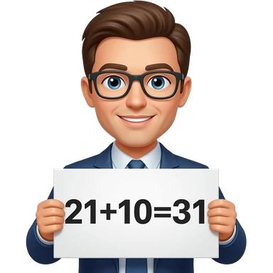 It says 21 with I kid (skin color dark chocolate with most of his hair cut off) pointing at 21 emoji