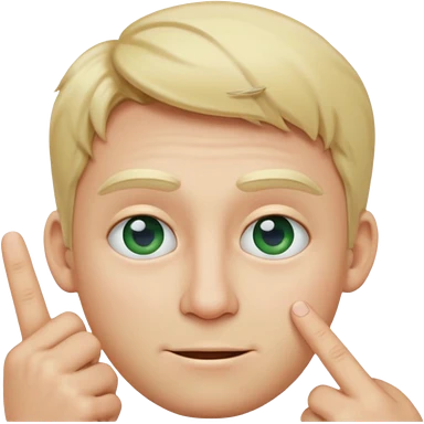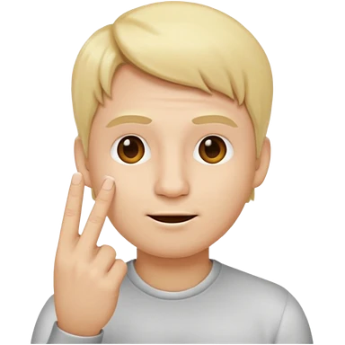 a emoji with two fingers in his nose, make him have a natural white skincolour and blonde hair, blue/green eyes, put the fingers in his noseemoji