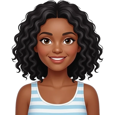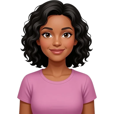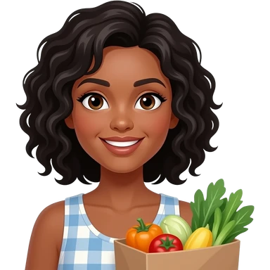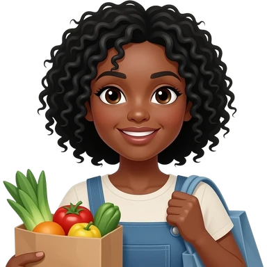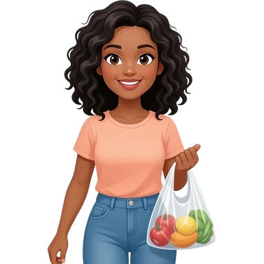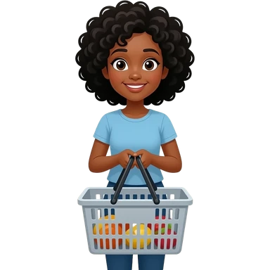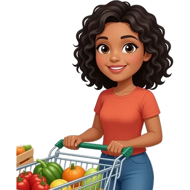 A medium-dark skinned woman with shoulder-length black curly hair grocery shopping. emoji