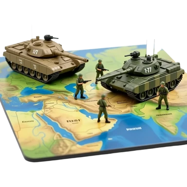 American tank vs Iran tank with stick men driving in a Risiko tabletop game style emoji