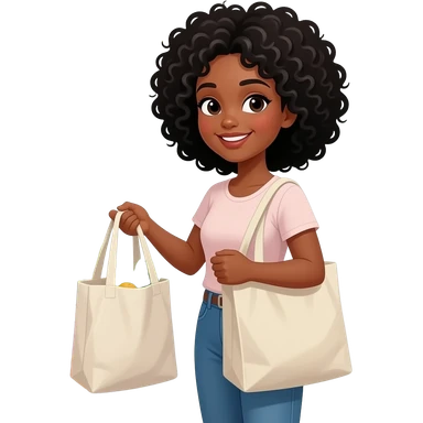 A medium-dark skinned woman with black curly hair grocery shopping emoji