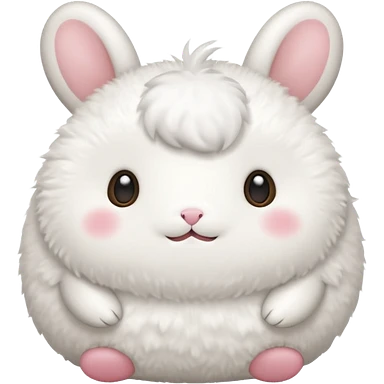 Fluffy round animal with cute little feet and button face and small ears like a molang character emoji