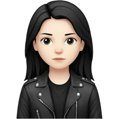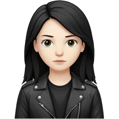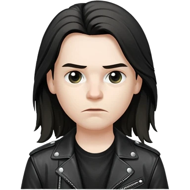 A fan of heavy extreme music, a metalhead with long black hair, rivets in chains on a leather jacket emoji