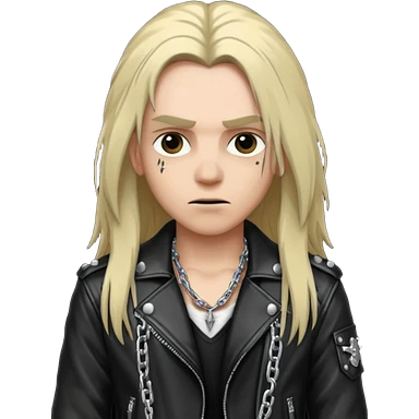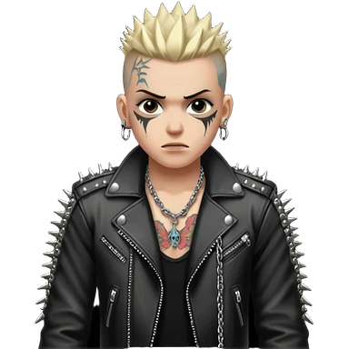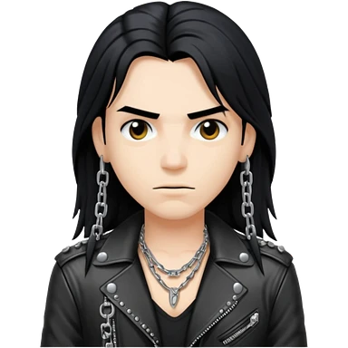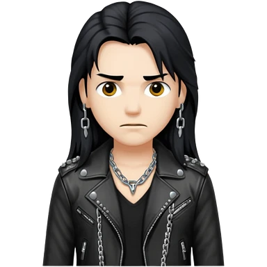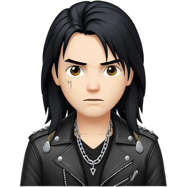 A fan of heavy extreme music, a metalhead in chains with rivets on a leather jacket emoji | AI Emoji Generator