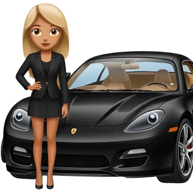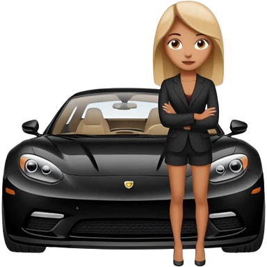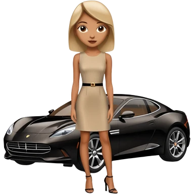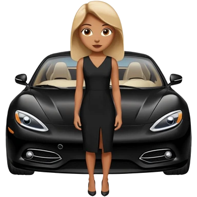 A fast, expensive black car with a young woman beside it emoji | AI Emoji Generator