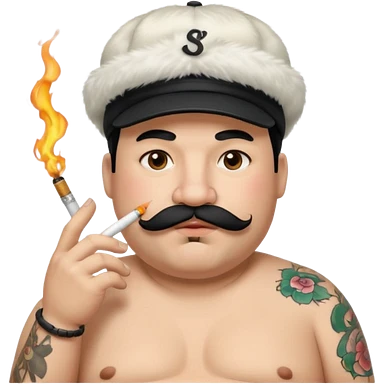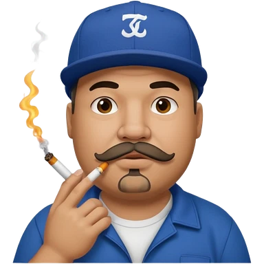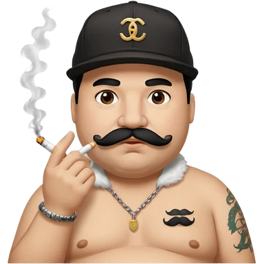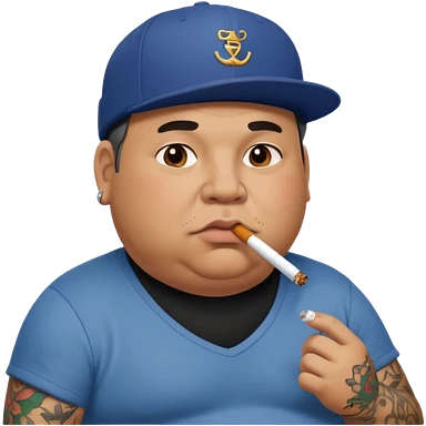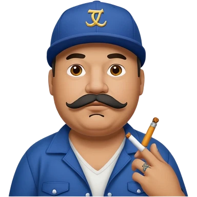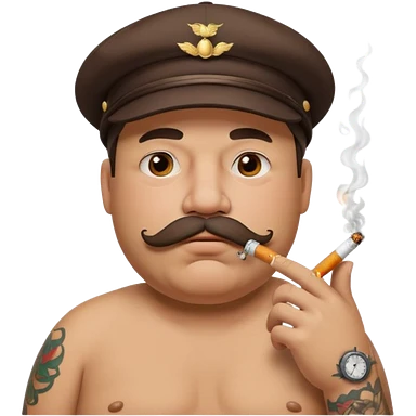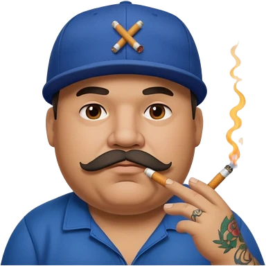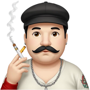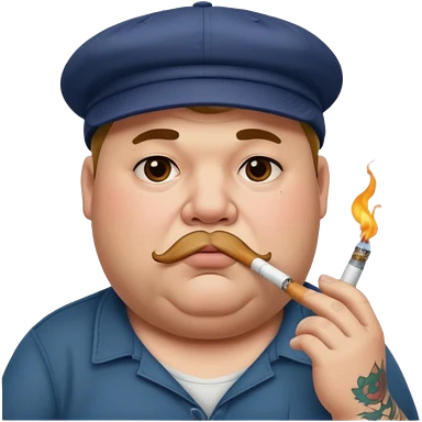 a fat dad with a cap and tattoos, with a cigarette in his mouth emoji | AI Emoji Generator