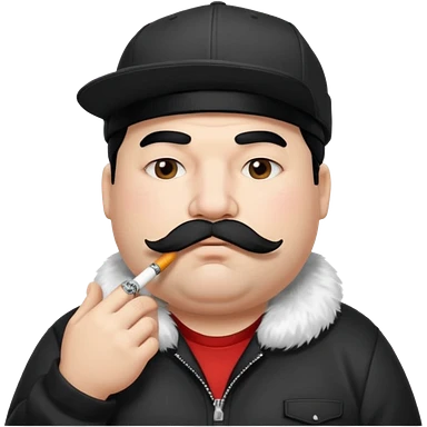 a fat dad in a hip hop cap with a tattoo, a cigarette in his mouth, and a mustache. emoji
