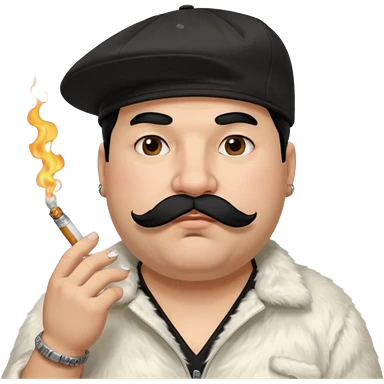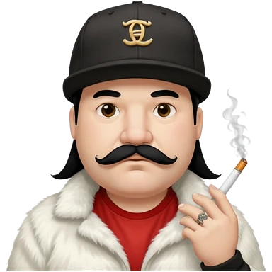 a fat father with white fur, black hair, a hip hop cap, a tattoo with a cigarette in his mouth, and a mustache. emoji