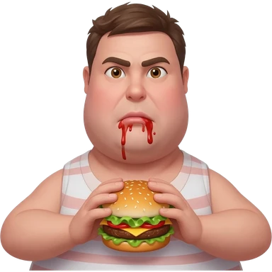 A fat guy eating a burger with ketchup all over his mouth emoji | AI Emoji Generator